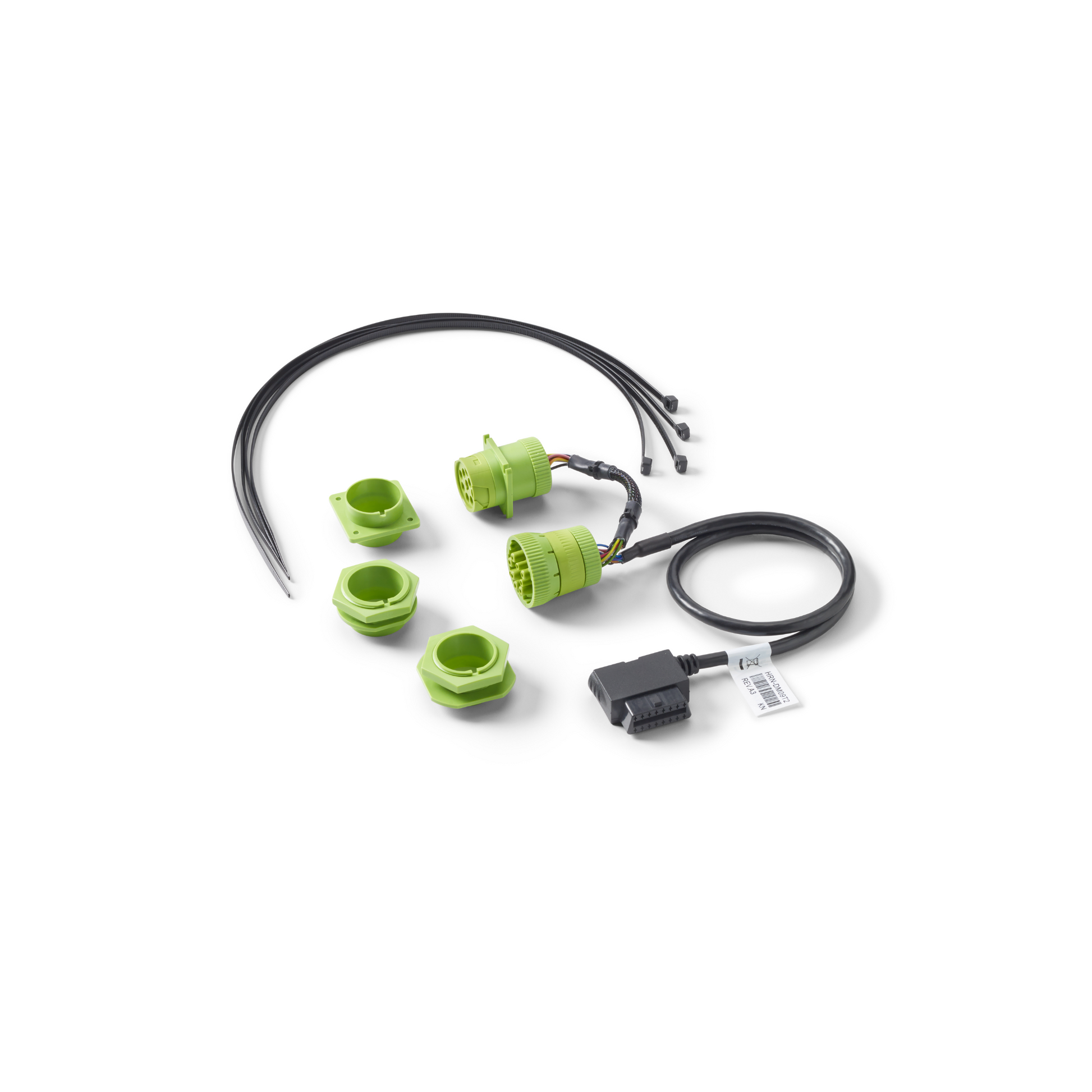 9-pin universal heavy duty T-harness, replacing HRN-DR09T2 and HRN-DS09T2. Includes a multi-connector kit with mounting adapters for most international heavy duty vehicles. TAA compliant.