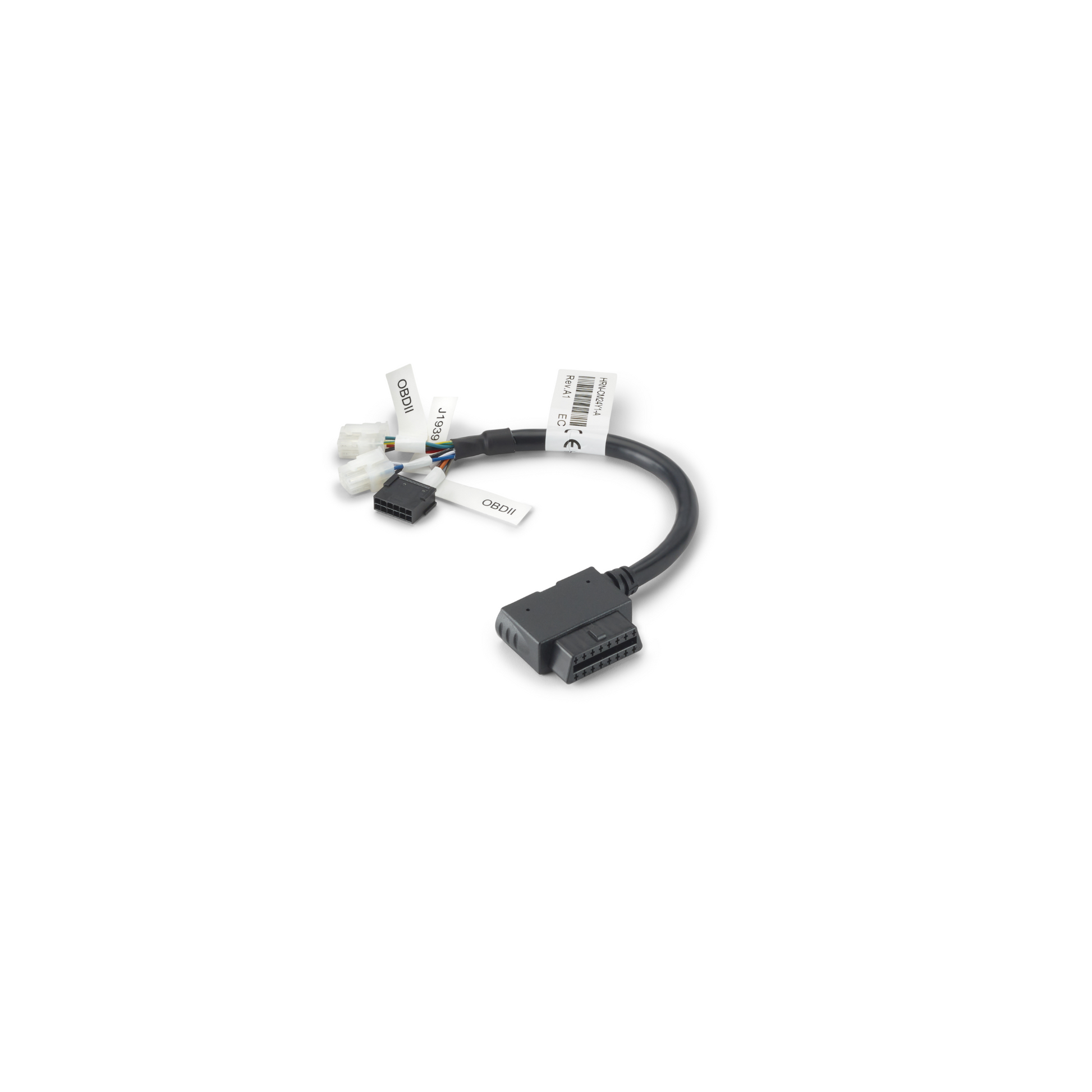 Base harness for adapting GO device installations to various vehicles and applications. Required for all custom harnesses that cannot directly connect to the GO device. Includes Molex connectors for one J1939 and two OBD points. TAA compliant.